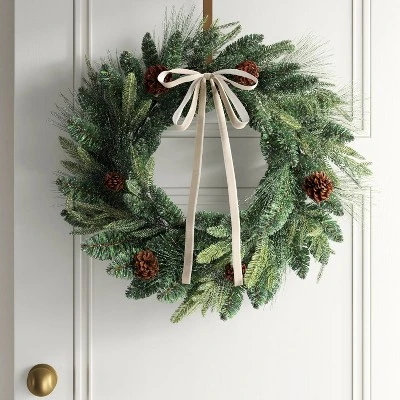 Add a bow-tiful touch of charm to your holiday crafts and decor with these 4-Count Christmas Fabric Bows from Wondershop™. Crafted from polyester, this set includes four faux-velvet bows in ivory shades with long trailing ties and slim silhouettes. Perfect for decorating wreaths, garlands, gifts, or DIY crafts, these elegant bows add a classic, celebratory touch to any festive display. Plus, they’re easy to pair with any holiday theme.