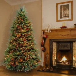 National Tree Company 6.5′ Pre-Lit Dunhill Fir Hinged Artificial Christmas Tree Multicolor Lights