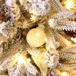 LuxenHome 3-Piece Pre-Lit Snowy Branches Artificial Christmas Tree Set With Metal Base Green