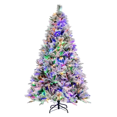 With 472850/1270 flocked branch tips & 26/34/40 delicate pine cones, it creates an astonishingly lifelike rendition of a winter wonderland. As darkness descends, the Xmas tree comes alive with up to 160/240/320 energy-saving LED lights, offering a dazzling array of 4 vibrant colors & 8 dynamic modes (in waves, sequential, slow fade, etc.) that will captivate your guests, effortlessly switch between modes with the convenient adaptor button. Crafted from a blend of premium PE & PVC materials, this Xmas tree stands strong & is fireproof, non-allergic & smell-free, ensuring safety & durability for years to come. The innovative hinged structure allows for easy setup, as the premium mixed branch tips automatically expand, the sturdy metal stand unfolds effortlessly. We even provide a pair of gloves for your protection. Versatile & imbued with the spirit of the season, this Christmas tree is a joyous symbol of happiness, perfect for any setting. When the festivities wind down, effortlessly disassemble it into 2/3/3 sections for convenient storage until the next magical holiday season.