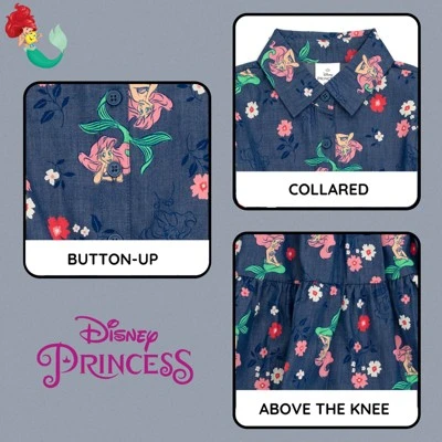 This Disney Girls Chambray Dress is perfect for your little one, from toddler to big kid. Made with soft and comfortable chambray fabric, it features a cute and colorful Disney character print with artwork of favorites like Minnie Mouse and Daisy Duck, Jack Skellington, Princesses Belle or Ariel, and Stitch and Angel from Lilo and Stitch. The shirt dress has a classic A-line silhouette with tiered ruffles, a collared neckline, and long sleeves. It also has a button closure at the front for easy dressing. Your child will love twirling around in this dress, whether it’s for a playdate or a special occasion. Get this adorable dress for your little Disney fan today!