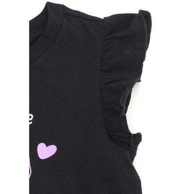 - Rib knit crew neck collar; Cute and stylish flutter sleeves; Awesome sublimation print design on skirt and digital print artwork with glitter on shirt; Sparkly lurex elastic waistband with 3D bow; Elastic waist for comfortable stretch and a better fit; Pull on closure