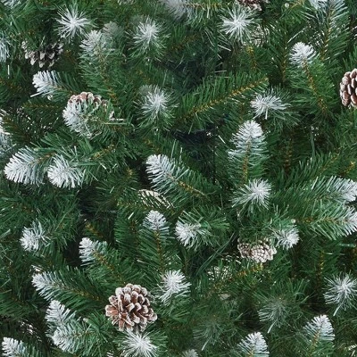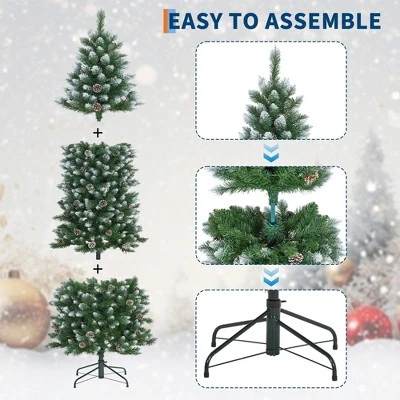 Pre-Lit Slim Christmas Tree With Warm White Lights, Pine Cones & Metal Stand — Weather-Resistant PVC Tips, 6/7.5/9/12 Ft